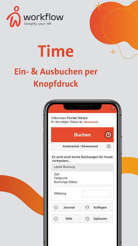 Webdesk Time to aplikacja mobilna firmy Workflow EDV GmbH (www.workflow.at) służąca do rezerwacji czasu obecności na stronie internetowej firmy systemu rejestracji czasu EWP.