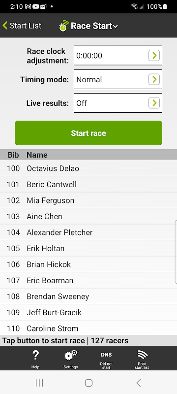 Nie jest wymagane połączenie z Internetem, aby zmierzyć czas wyścigu i uzyskać wyniki