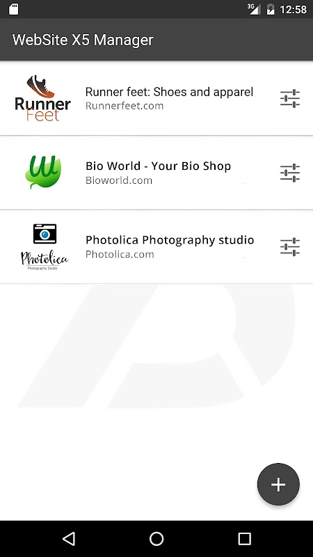 Uruchom wszystkie witryn utworzonych za pomocą WebSite X5 Professional (począwszy od wersji 13) bezpośrednio z telefonu lub tabletu z smarphone WebSite X5 Menedżer bezpłatnej aplikacji, teraz dostępne dla systemu Android. Zobacz wszystkie witryn sklepów internetowych, blogów i aktywność "w jednym miejscu, gdy jesteś poza domem i otrzymywać powiadomienia w czasie rzeczywistym. To wszystko jest na wyciągnięcie ręki. W każdej chwili w dowolnym miejscu.