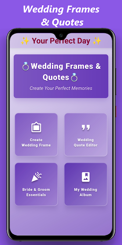 Przekształcaj swoje zdjęcia ślubne i pielęgnuj wyjątkowe chwile dzięki naszej aplikacji Wedding Frames & Quotes – idealnemu towarzyszowi do tworzenia i udostępniania wspomnień ślubnych! Niezależnie od tego, czy planujesz ślub, czy chcesz stworzyć piękne zdjęcia o tematyce ślubnej, nasza aplikacja zapewnia wszystko, czego potrzebujesz w jednym miejscu.