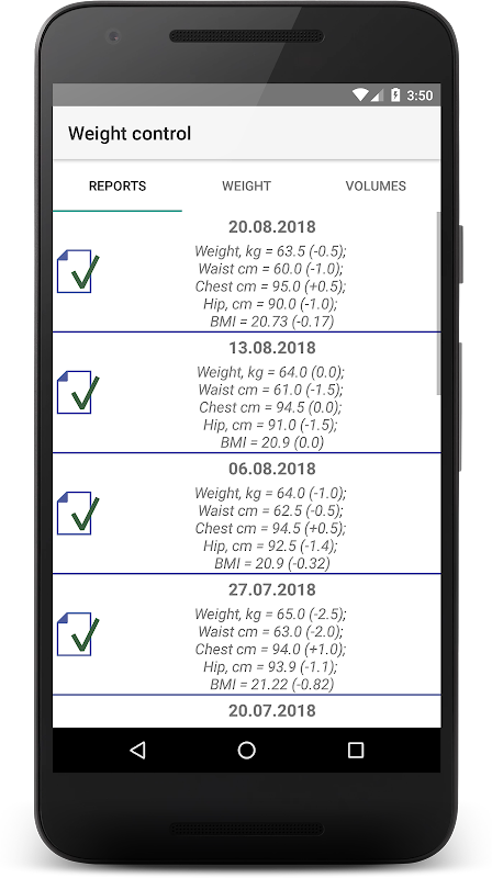 Rozszerzona wersja z dodatkowymi funkcjami! Wygodne i funkcjonalne aplikacja pomoże ci zachować statystyk parametrów ciała. Będziesz mógł wyraźnie zobaczyć i pięknie postępu w osiąganiu celów. Aplikacja zawiera wyświetlacz w formie wykresów i zrozumieć statystykę.