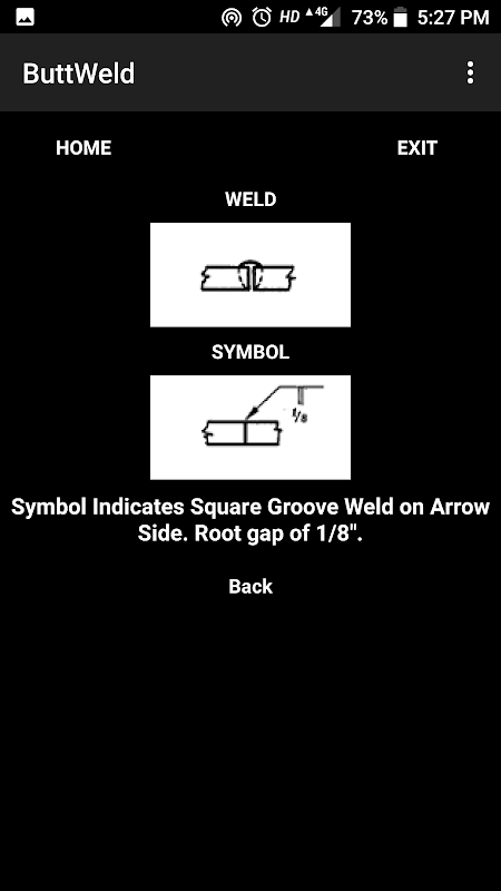 Ta aplikacja Zaprojektowany, aby dowiedzieć się Butt & spoina pachwinowa symboli używanych w Engg. Rysunek