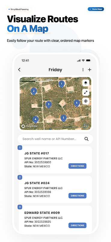 Wyszukaj i nawiguj do lokalizacji odwiertów naftowych w całych Stanach Zjednoczonych