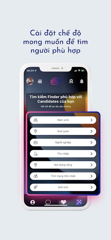 Ghép cặp, kết nối, tìm hiểu người ấy chưa bao giờ dễ dàng đến thế. Một dịch vụ tin được xây dựng lên để dành cho những người độc thân và tìm kiếm một mối quan hệ nghiêm túc.