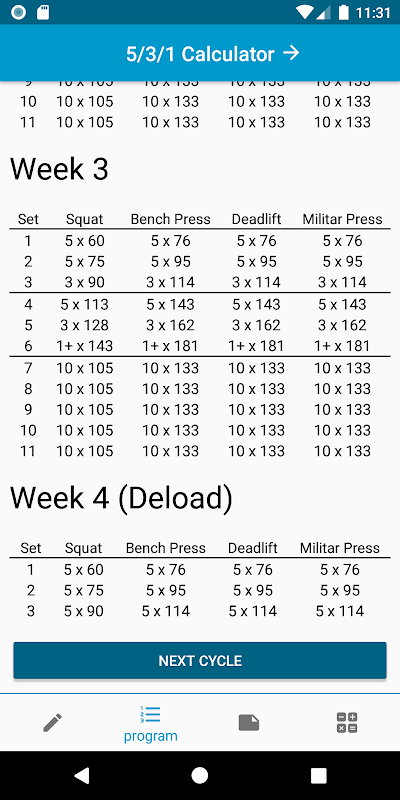 Jim Wendler 5/3/1 kalkulator programu, łatwo i szybko obliczyć swoje dzienne wagi