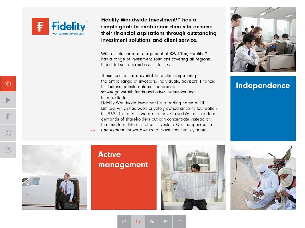 Ta aplikacja rozszerzona rzeczywistość odsłania niektóre z najciekawszych propozycji inwestycyjnych, tych, którzy dziś pomagają kształtować i prowadzić poglądy naszych zespołów inwestycyjnych. Proszę przyjść i dowiedzieć się trendy na przyszłość. Jeśli chcesz wiedzieć, co dalej, po prostu zapytaj Fidelity.