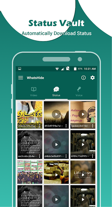 WhatsHide is the great app that helps you to manage your all saved media files at one place. Download any media file (images, videos, audios, documents), store it for offline view and share it on any social media with your friends and family. This free WhatsApp media status downloader allow you to download photo images, GIF, audio files and video status.