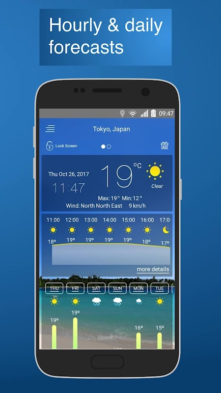 Wheather Live to aplikacja, która umożliwia bezproblemową integrację wizualnie atrakcyjnego widżetu z ekranem. Wybierz duży, szczegółowy widżet lub utrzymuj ekran główny tak czysty, jak to możliwe, zawierający tylko niezbędne informacje.