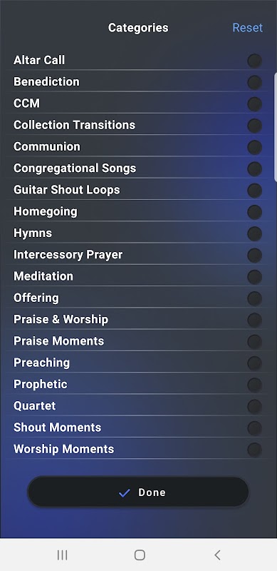 -Przesuń w lewo i natychmiast uzyskaj dostęp do 4 poziomów muzyki uwielbienia, którą możesz przełączać w dowolnym momencie! Możesz także zmieniać klucz i tonację do woli.