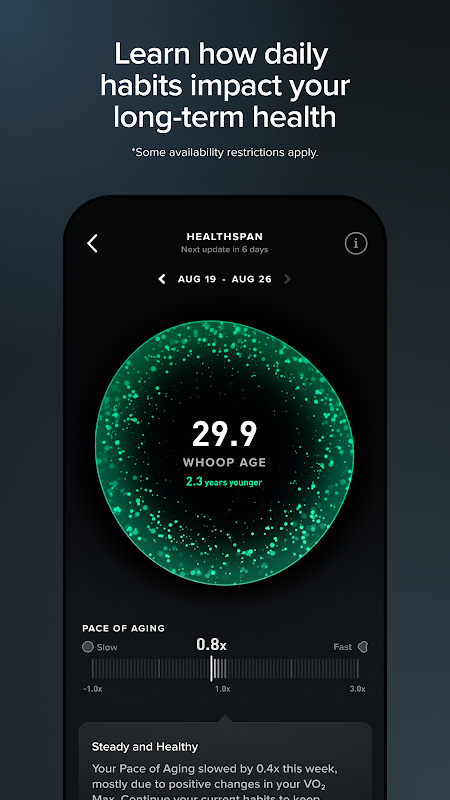 Healthspan*: Skuteczny sposób na ilościowe określenie wieku i spowolnienie tempa starzenia. Oparty na wiodących badaniach nad długowiecznością, WHOOP wskazuje codzienne nawyki, które wpływają na Twoje zdrowie w dłuższej perspektywie.