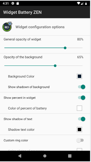 Battery Widget Zen to widget na ekran główny Twojego Androida, wyświetlający okrąg lub ikonę ze stanem obciążenia i temperaturą (opcjonalnie) baterii telefonu.