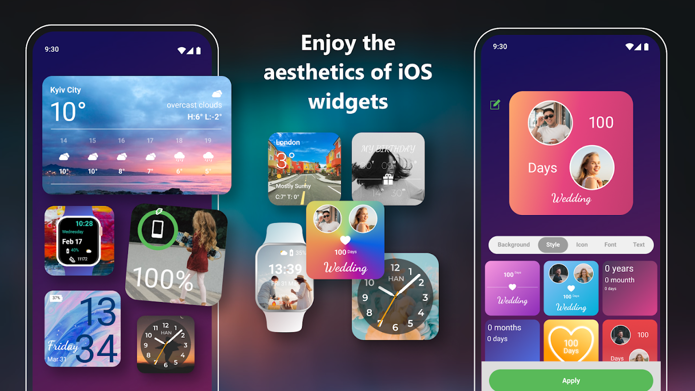 iWidgets zawiera różne kolorowe widżety dla urządzeń z systemem Android.