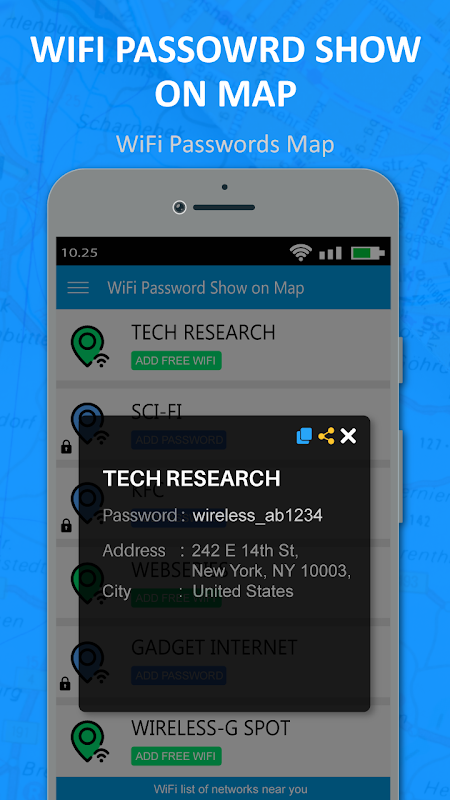 Mapa haseł Wi-Fi - Pokaż hasła Wi-Fi na mapie to niesamowite narzędzie do uzyskania bezpłatnego dostępu do Internetu Wi-Fi na całym świecie. Dzięki mapie haseł Wi-Fi możesz łączyć się z bezpłatnymi sieciami Wi-Fi, wyszukiwać sieci Wi-Fi i dołączać automatycznie. Nie ma problemu, gdzie jesteś, jest to najlepszy sposób na bezpłatne surfowanie po Internecie. aplikacja haseł wifi wykrywa połączenia Wi-Fi w pobliżu. To bezpłatne połączenie internetowe Wi-Fi pomaga w znajdowaniu sieci WIFI, łączeniu i zarządzaniu hotspotami Wi-Fi, możesz sprawdzić najbliższe sieci Wi-Fi i połączyć je z aplikacją do łączenia się z internetem WiFi Hasła.