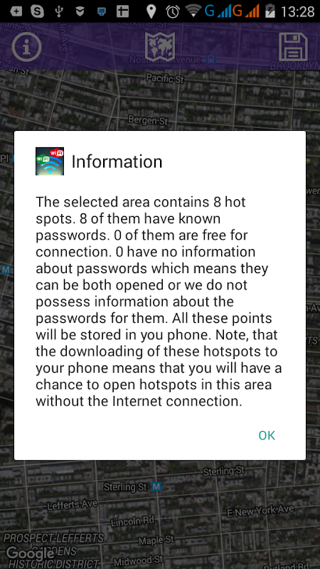 2) Locating WiFi networks in certain radius from your current location with phone's GPS sensor, download passwords in program's cache and use them even without Internet connection in place;