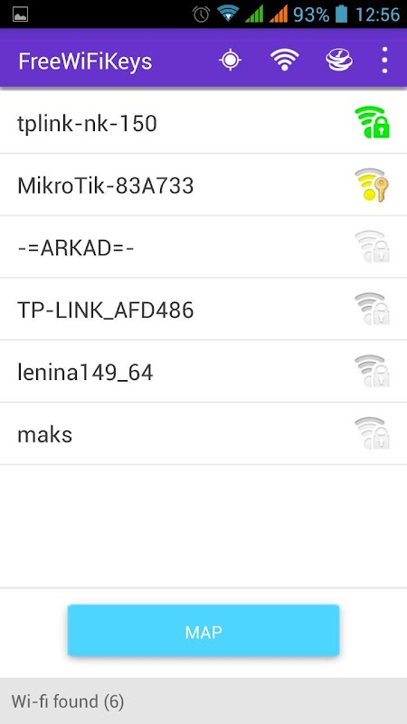 You come to a place where there are several Wi-fi connections. Open the program and it shows you them. Networks list displays all available WiFi networks splitting them into three categories: