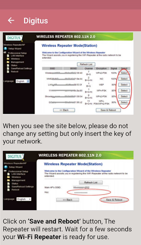 Inne marki repeaterów Wi-Fi opisane w naszej aplikacji: Devolo, Kogan, D Link, Digisol, Netgear, Wavlink, Digicom, Zyxel, Asus, TP Link, PLDT, Medialink, Xiaomi, Netcomm, Tenda, Etisalat, Edimax, Xiaomi, Digitus, iBall , Verizon, Linksys