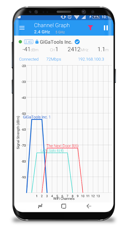 WiFi Tools is a most powerful WiFi Analyzer app that helps you optimize your WiFi networks by examining information of surrounding WiFi networks such as name, frequency, channel and signal strength. It also provides info about WiFi channels score helps you find the best channel for your WiFi network.