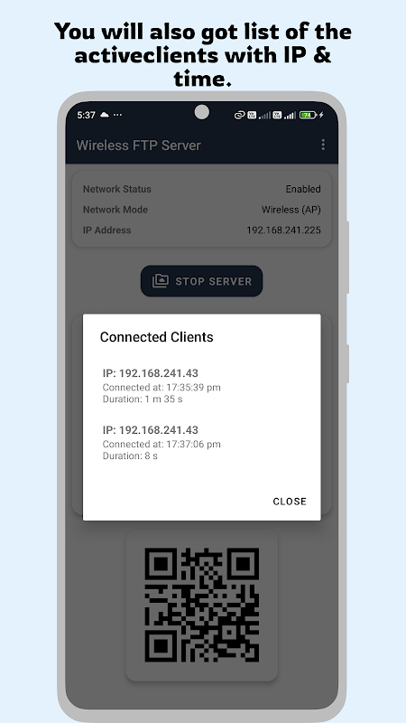3. Użyj dostarczonego kodu QR lub ręcznie wprowadź adres FTP w Eksploratorze plików na komputerze (lokalizacje sieciowe) lub w dowolnym kliencie FTP (np. FileZilla).