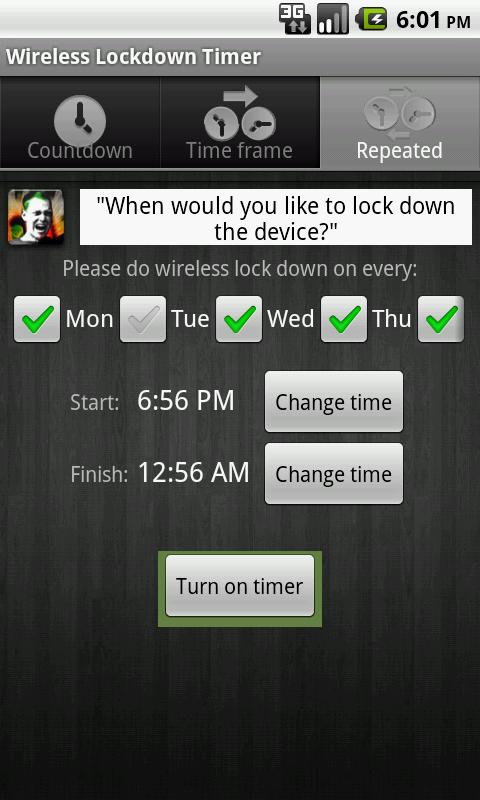 * Lockdown can be repeated automatically on selected days (everyday, too)