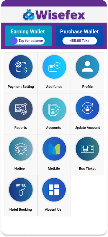 Wisefex is a platform to buy bus ticket, hotel booking an easy way. User can easily add fund there mobile banking.