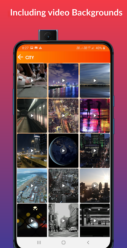 ♦ Kreator wprowadzający do kreatora ma wstępnie zdefiniowane szablony animacji, możesz po prostu wybrać jedną z animacji do wykonania. ma również tło wideo HD i obrazy, które można wybrać z własnej galerii lub z galerii onlike.