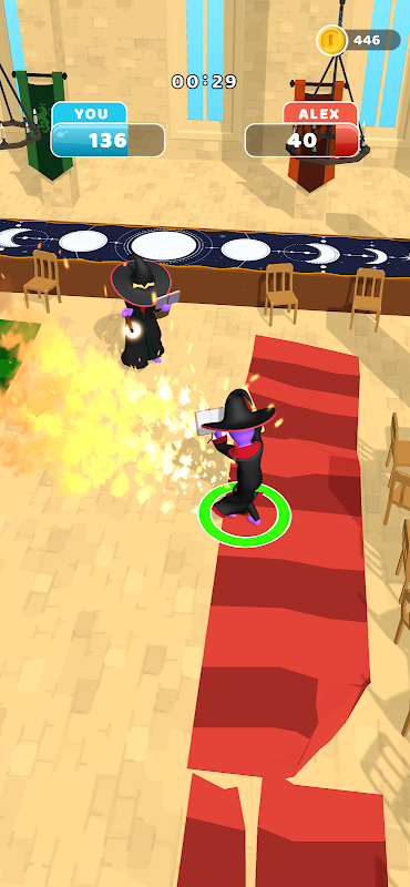 Dotknij i przytrzymaj, aby rzucić zaklęcie, zwolnij w odpowiednim momencie, aby dotrzeć do celu.