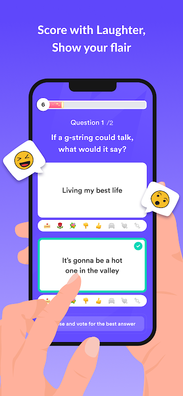 Niezależnie od tego, czy jest to nocowanie, wieczór panieński, czy impreza domowa, zamień każdą noc w piwną grę z WizeCrack, w której głosy oznaczają punkty. Zdobądź punkty w naszym olśniewającym systemie monet i pochwal się swoimi umiejętnościami komediowymi w naszej globalnej tabeli liderów.