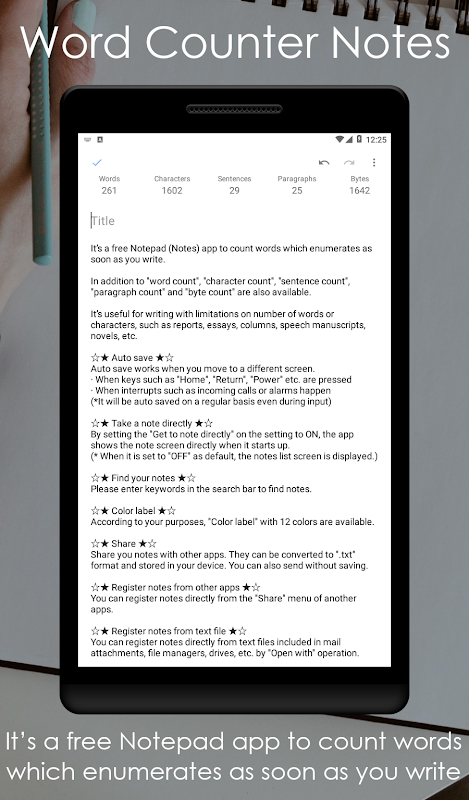 Jest to bezpłatna aplikacja Notatnik (Notes) do liczenia słów, które wyliczają zaraz po napisaniu.