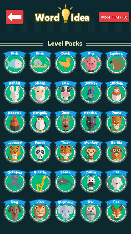 You start game with Fish Brain, every level you completed you get smarter. From Fish to Fox Packs, all levels are waiting for you!
