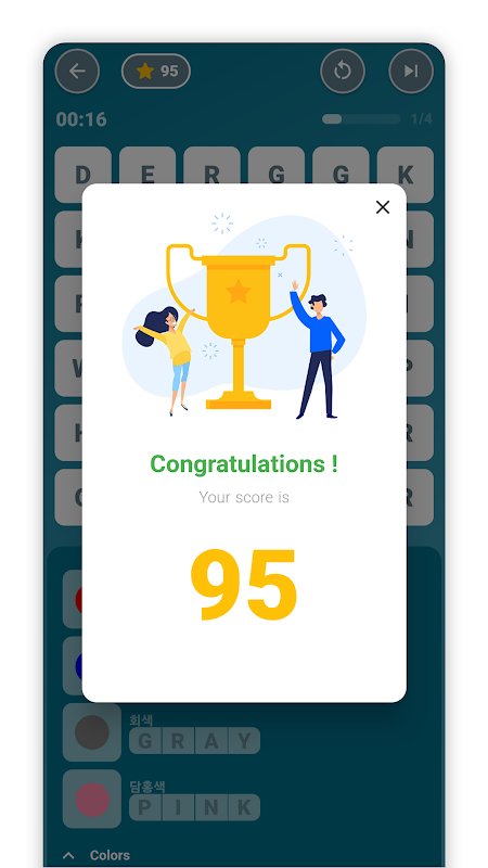 🎨 Kolorowe znaczniki fraz słownych: Łatwo identyfikuj słowa w żywym i przyjemnym dla oka interfejsie. 💡 Wskazówki, które Ci pomogą: Jeśli utkniesz, skorzystaj ze wskazówek, takich jak obrazy, wymowa i sugestie słów.
