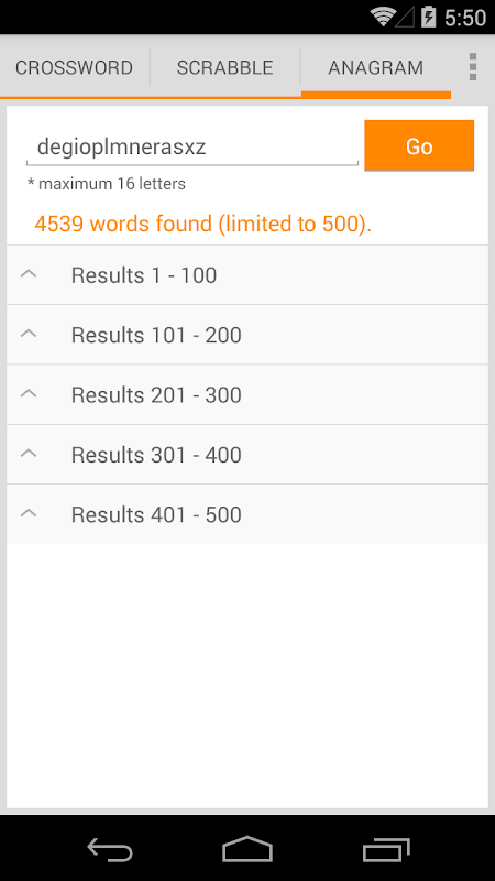 - Sorts results by score and word length.