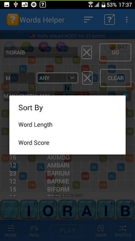- Sortuj wyniki według długości słowa lub wyniku słowa