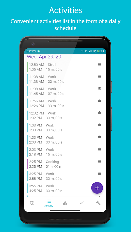 Również możliwość tworzenia różnych kategorii aktywności - czy to konkretnych zadań do pracy, nauki, hobby czy czytania książki, pozwoli Ci kontrolować czas spędzany na poszczególnych kategoriach, śledzić go w dynamikę i prowadzić zarządzanie czasem.