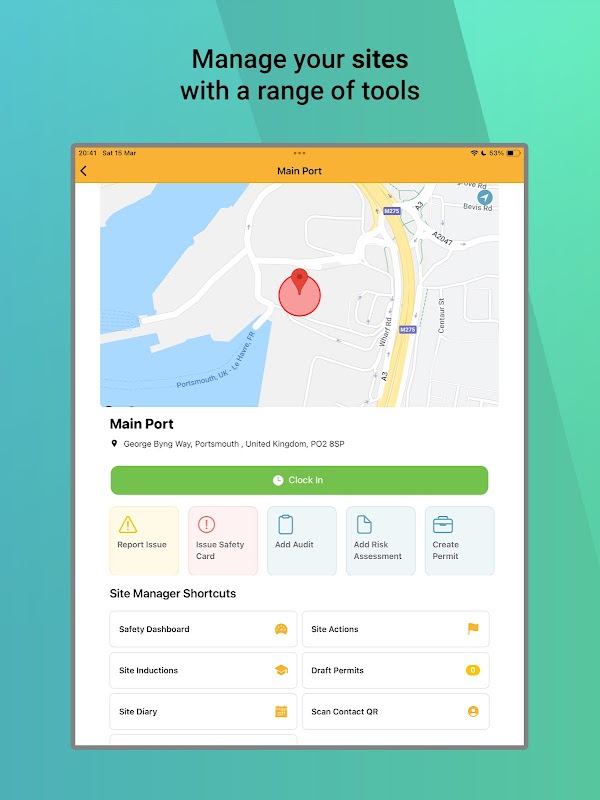 Aplikacja Portfel roboczy została specjalnie zaprojektowana, aby dostarczać przydatnych informacji podczas pracy w wielu różnych miejscach, pomagając zmniejszyć ryzyko i zwiększyć świadomość zagrożeń na miejscu.