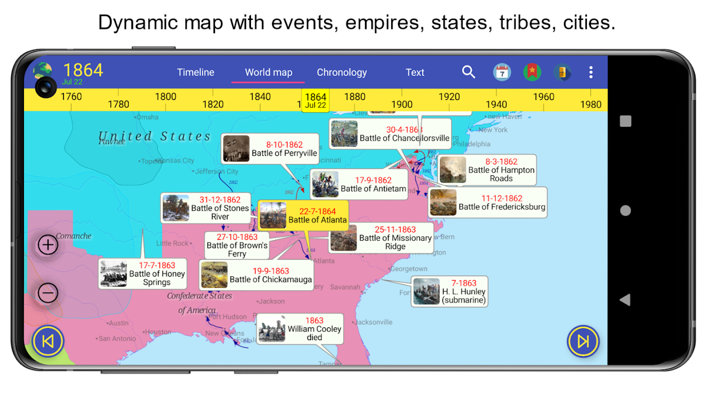 Chronologiczna i geograficzna prezentacja tematów i wydarzeń historycznych. Podróżuj przez fascynującą historię ludzkości od najwcześniejszych cywilizacji do współczesności.