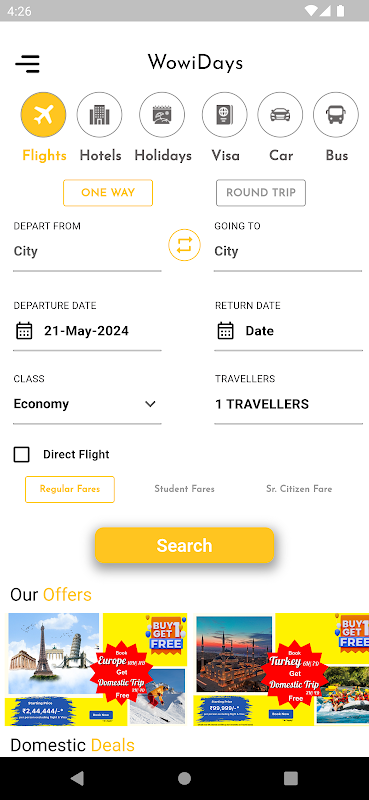 W WOWI Days jesteśmy dumni z oferowania szerokiej gamy ofert lotów, które odpowiadają każdemu budżetowi i preferencjom. Niezależnie od tego, czy planujesz podróż krajową w swoim kraju, czy podróż międzynarodową, nasza platforma zapewni Ci dostęp do najbardziej konkurencyjnych dostępnych biletów lotniczych.