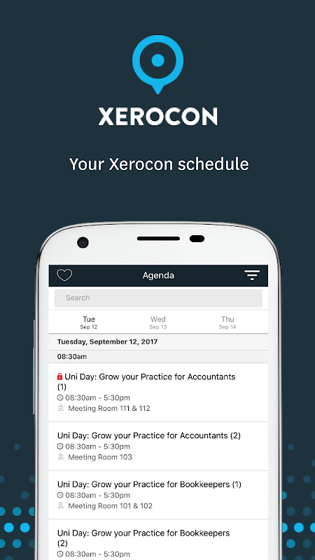 It gives you exclusive access to tools for adding items to your own agenda, accessing a personalised event timeline, quickly locating others at Xerocon, giving feedback, and more.