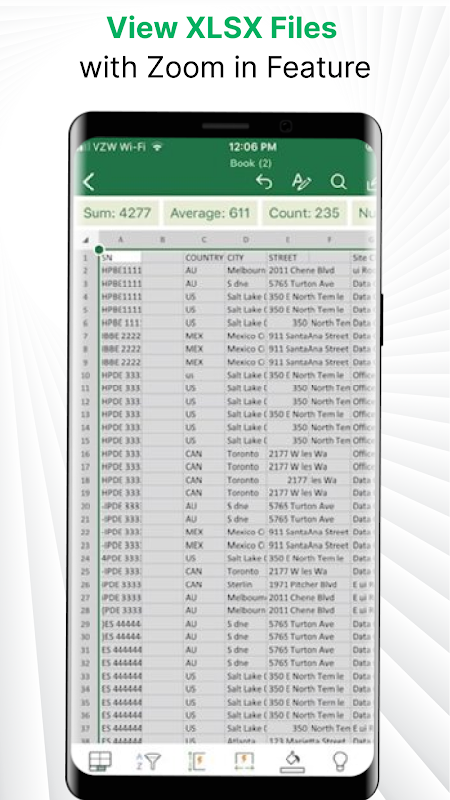 „Czytnik plików Xlsx z przeglądarką plików Xls” Czytnik plików Xlsx zapewnia użytkownikom niesamowite funkcje. Możesz szybko i łatwo przeglądać i czytać swój plik xlsx. Możesz zarządzać swoim wykresem, analizami danych i nie tylko podczas przeglądania skoroszytów za pomocą przeglądarki XLSX.