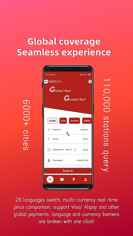 Aplikacja obejmuje około 60,000 miast na całym świecie, oferując informacje o około 110,000 stacjach kolejowych i autobusowych, co ułatwia inteligentne planowanie i rezerwowanie podróży dalekobieżnych pociągiem i autobusem.