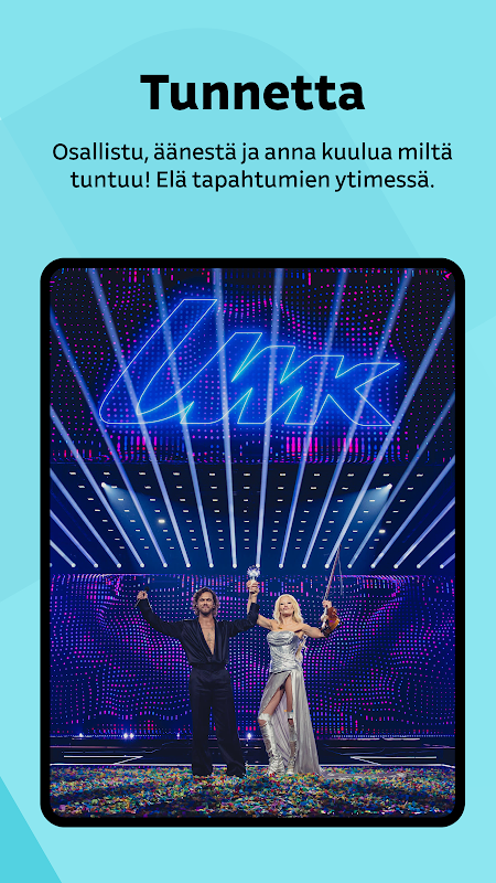 Dzięki aplikacji Yle możesz również osobiście uczestniczyć w wydarzeniach: zagłosować na swoją ulubioną drużynę UMK lub porozmawiać z innymi podczas obchodów Eurowizji i Linny. Znajdziesz tu również relację z meczu Elämäni biisi, prognozę pogody i transmisje tekstowe.