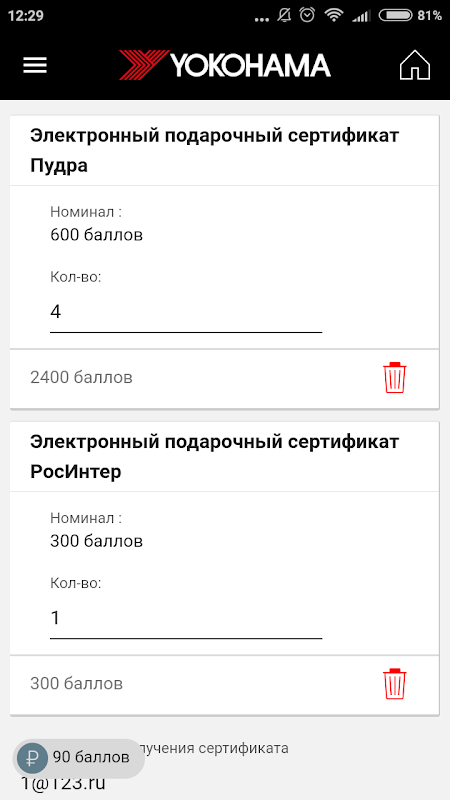 • Koszyk na aktywnych punktów talon Adamas, pudra, Rosinter, iTunes, córki syna, M. Video, Red Cube, plac Świat, Ozon.ru, Sportmaster, Travel, Euroset, Sunlight, Statek, Widok Historia zakupu;