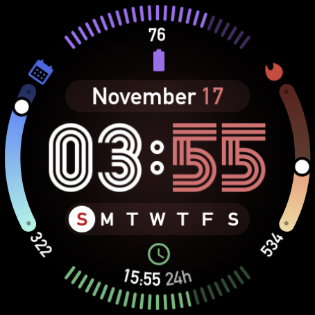 Jego cechy: Cyfrowa twarz, konfigurowalna, wiele kolorów, pasek postępu, osobowość, styl czasu, miejsce na komplikacje