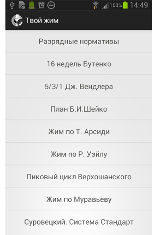 Встроены и постоянно обновляются популярные программы тренировок: