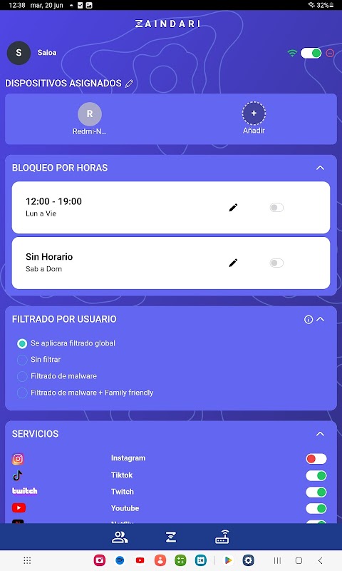 Dzięki tej aplikacji możesz skonfigurować swój router ZAINDARI, dodawać różne profile, przeglądać czas użytkowania, ograniczać usługi, konfigurować ograniczenia czasowe i wiele więcej...
