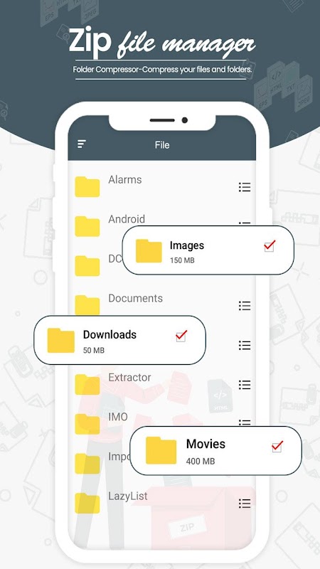 Menedżer plików Zip - Kompresuj wszystkie swoje dokumenty, łatwe narzędzie do zip - Wszystkie pliki kompresują pliki docx, mogą również łatwo zawierać inne pliki tekstowe, pliki pdf. Łatwa aplikacja do rozpakowywania plików zip. Łatwe narzędzie zip - kompresor wszystkich plików może spakować / rozpakować pliki i łatwe narzędzie zip - kompresor wszystkich plików. Możesz kompresować pliki i zmniejszać je jednym kliknięciem. Wypakuj wszystkie pliki zip i pliki rar za pomocą tej aplikacji.