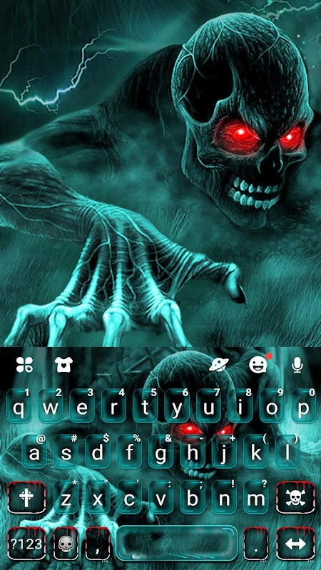Zobaczysz jak przyjemnie, płynnie i szybko pisze się na klawiaturze motywów Zombie Skull. Jeśli chcesz dostosować swój telefon, to klawiatura motywów Zombie Skull da Ci to na 100 procent. Na pewno pokochasz klawiaturę motywów Zombie Skull.