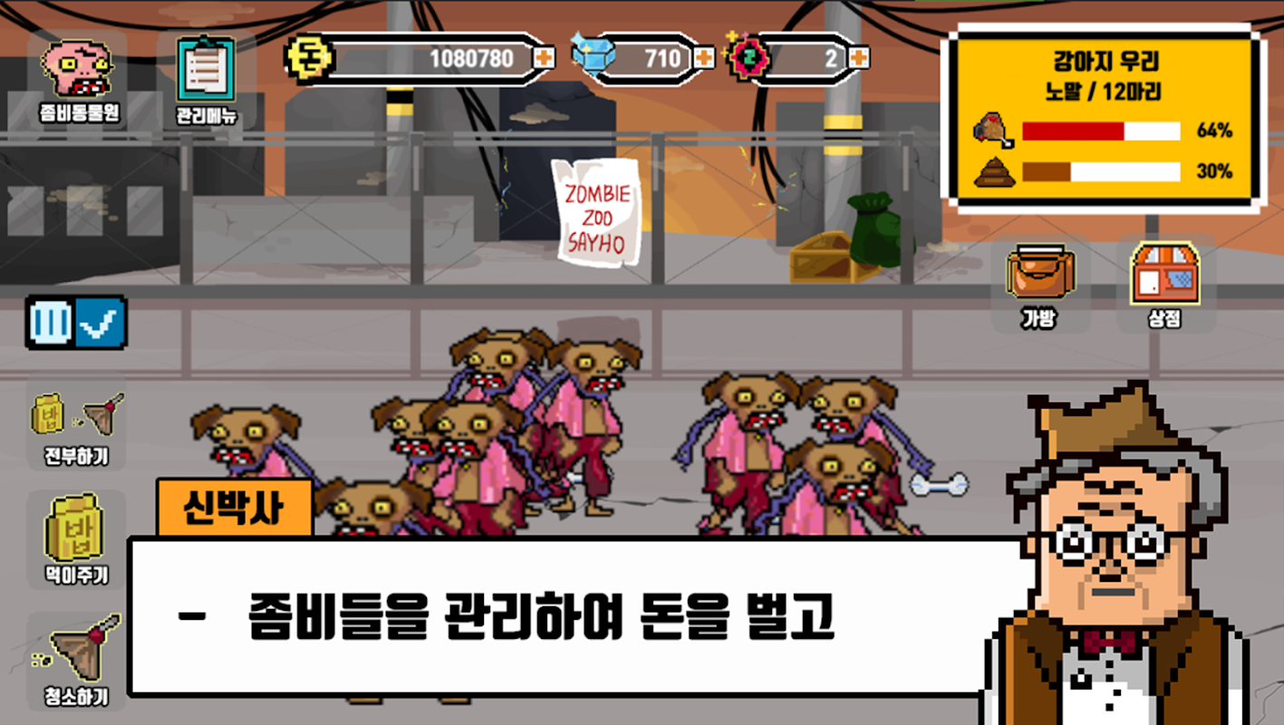 - 좀비를 키우는 동물원, 좀비원을 관리하는 게임입니다.