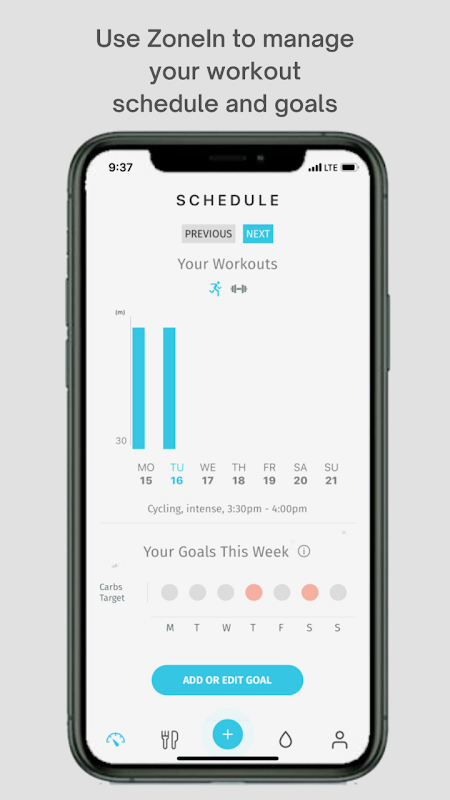 Dodaj swoje treningi do ZoneIn, na dziś i / lub na przyszłe daty. Po dodaniu treningu Twój dzienny plan posiłków, który zapewniamy, automatycznie dostosuje się do czasu i specyficznych wymagań ćwiczeń. Poinformujemy Cię, kiedy powinieneś jeść każdy z posiłków (i mieć przekąskę energetyczną), aby jak najlepiej wykorzystać swój organizm podczas treningu.