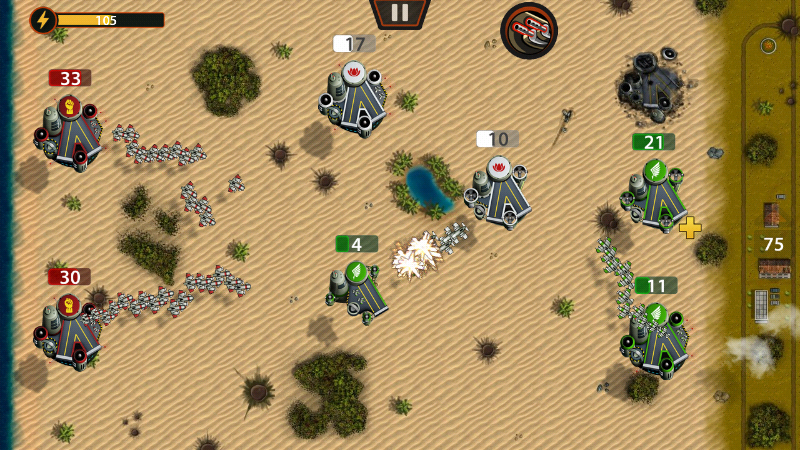 Seize enemy bases, improve your skills, bases, aircrafts, collect energy and use it for special abilities such as storm cloud, power gain, construction acceleration and the creation of zeppelins.