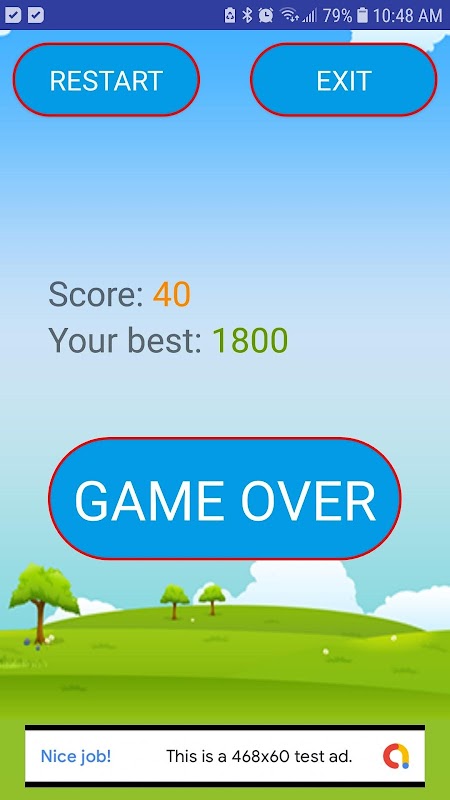 This is a very simple but really a fun game for kids and young. As planes appear, start shooting and gain score. Sounds of bullets can be heard with real blast images. There is time counter strip at the top right corner of screen, that diminishes as you slow down shooting until its all gone and then game finishes. Then you are shown your score as well as your best score on the next screen. You can then restart the game or just exit.